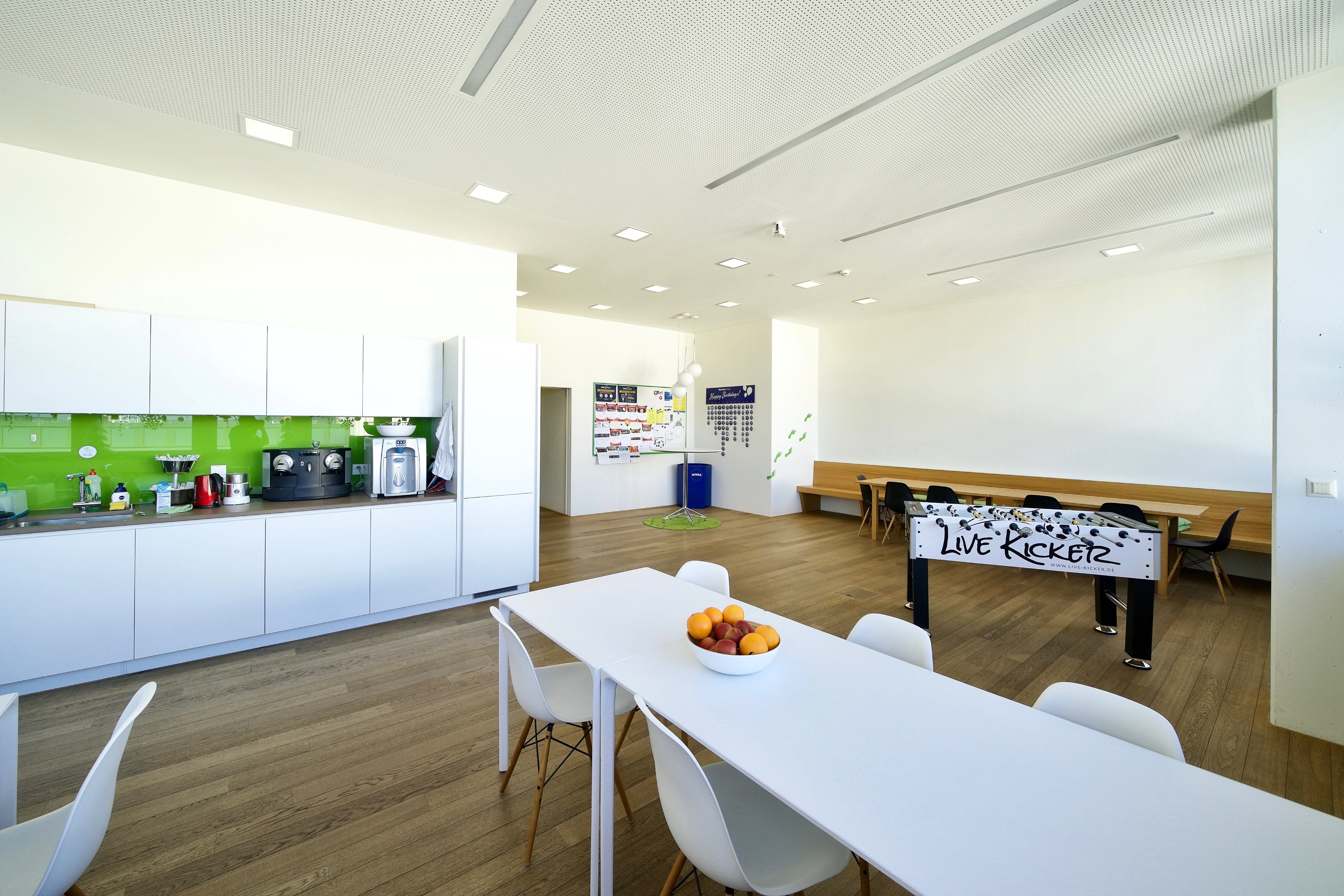 Beaucoup d'entre nous passent une grande partie de leur temps au travail. Il est donc important pour nous de faire de notre bureau un endroit où l'on peut se sentir à l'aise et se concentrer. Et si jamais tu as une petite faim, il y a toujours des fruits frais de saison à disposition. Les occasions pour se changer les idées ne manquent pas non plus. Fais une pause dans notre espace lounge ou défie tes collègues à un match de baby-foot. Nous sommes sûrs que tu te plairas ici.